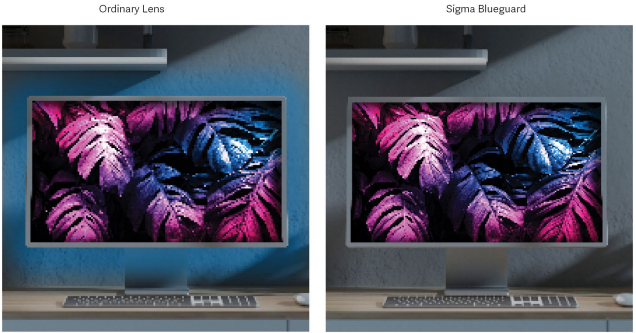 part of the high-energy blue-violet light emitted by screens and LED sources, Sigma Blueguard helps protect the eyes while maintaining clear, comfortable vision throughout the day.