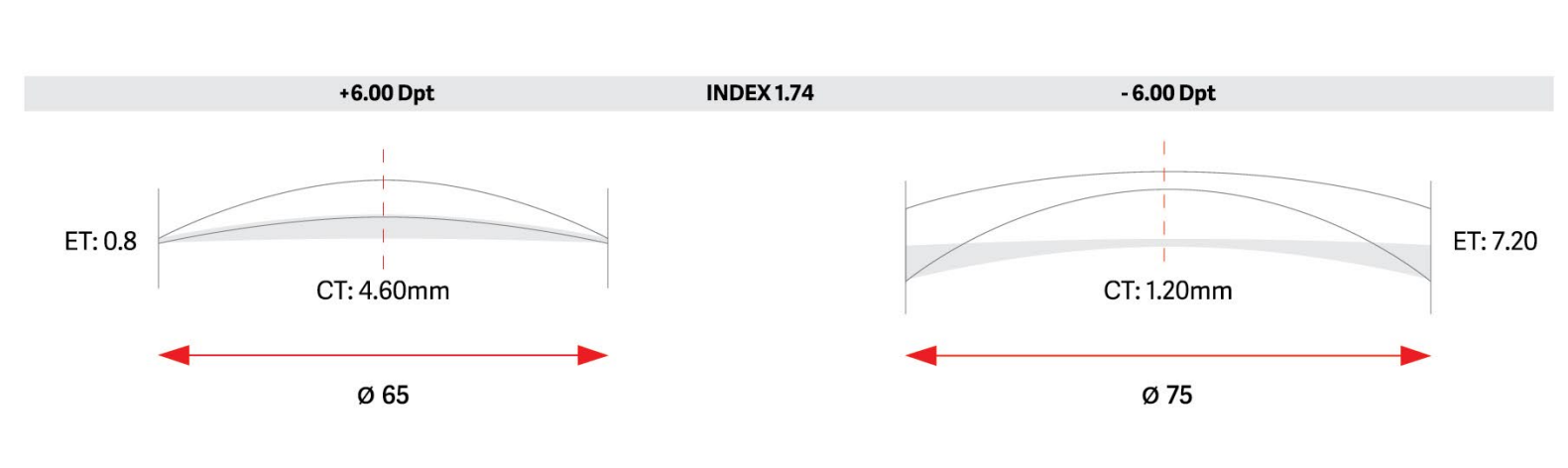 • High to very high prescriptions (±6.00 D and above), where thickness reduction and lightweight comfortare essential.